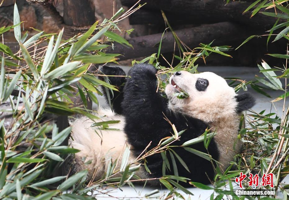 1月25日,成都大熊猫繁育研究基地召开新闻发布会就网传大熊猫患“螨虫眼”、14号兽舍为“疯熊院”、基地办公场所装修豪华、大熊猫“福来”失踪等传闻均作了澄清。基地相关人员在发布会上辟谣称网络质疑内容与事实严重不相符。图为网红大熊猫“奇一”在享用美食。 中新社记者 安源 摄