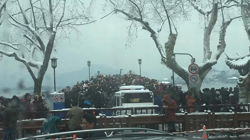 杭州大雪 民众挤满断桥一幕