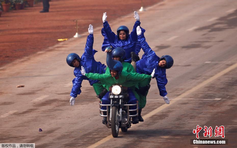 印度庆祝共和国日 摩托车队展“神技”