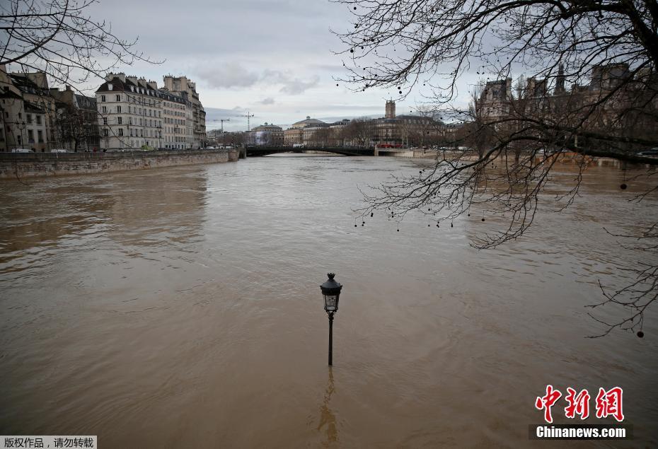法国塞纳河上升淹没街道 民众乘舟出行