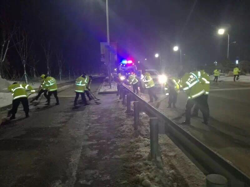 结束彻夜扫雪除冰任务后
