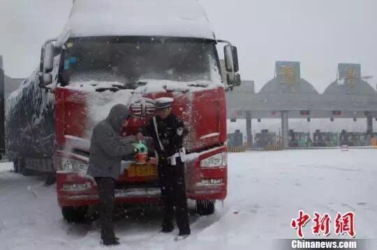 高速交警贴心地为滞留司机提供热水,
