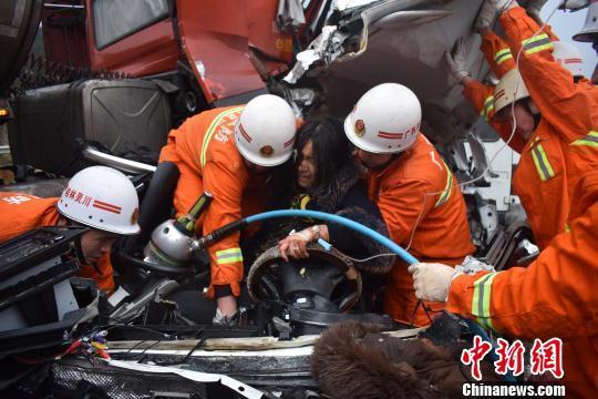 广西5车连撞致3死1伤 唯一幸存者被救出