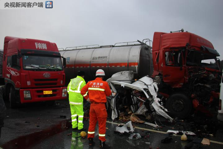 广西5车连撞致3死1伤 唯一幸存者被救出