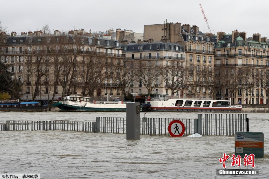 在巴黎近郊区新城圣乔治,不少地方淹水,居民被迫以船代步。当局表示,市民的生活可能需要数周才能恢复正常。图为水位高涨的塞纳河。