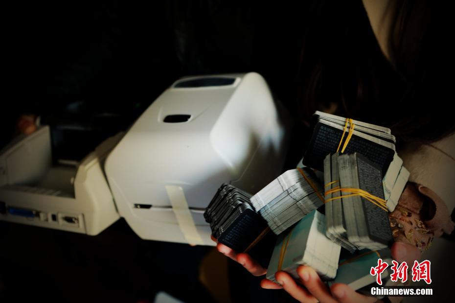 图为警方缴获的制假设备及假火车票。 周延民 摄