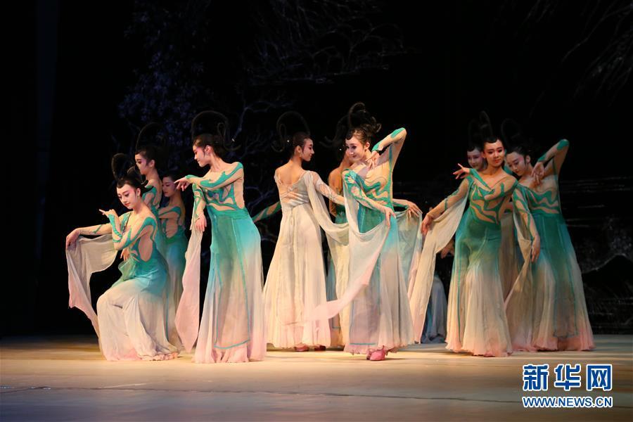 1月28日,在保加利亚古城大特尔诺沃,北京舞蹈学院学生表演古典舞《粉 墨》。  新华社记者战小漪 摄