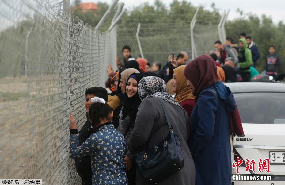 巴勒斯坦妇女被禁止进入体育场 铁网外观看足球赛