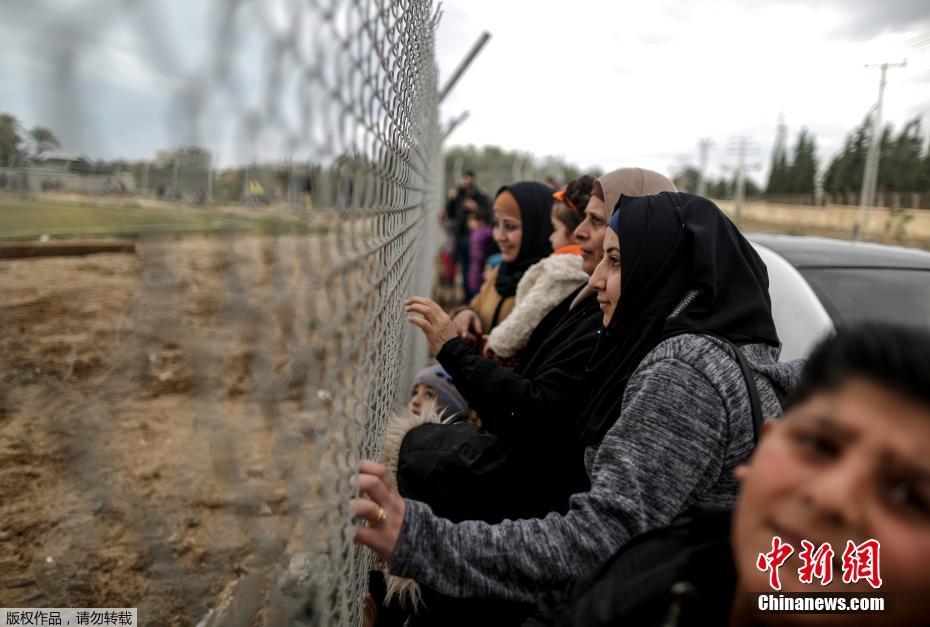 巴勒斯坦妇女被禁止进入体育场 铁网外观看足球赛