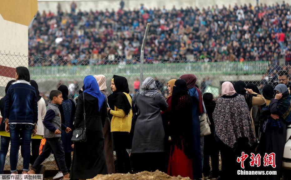 巴勒斯坦妇女被禁止进入体育场 铁网外观看足球赛