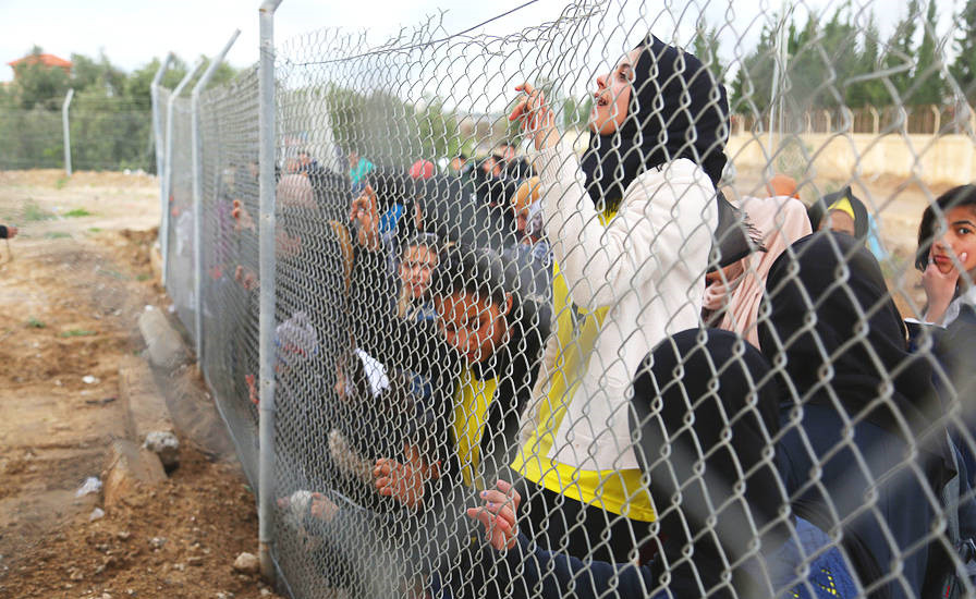 被禁止入场 巴勒斯坦妇女站铁网旁看球赛