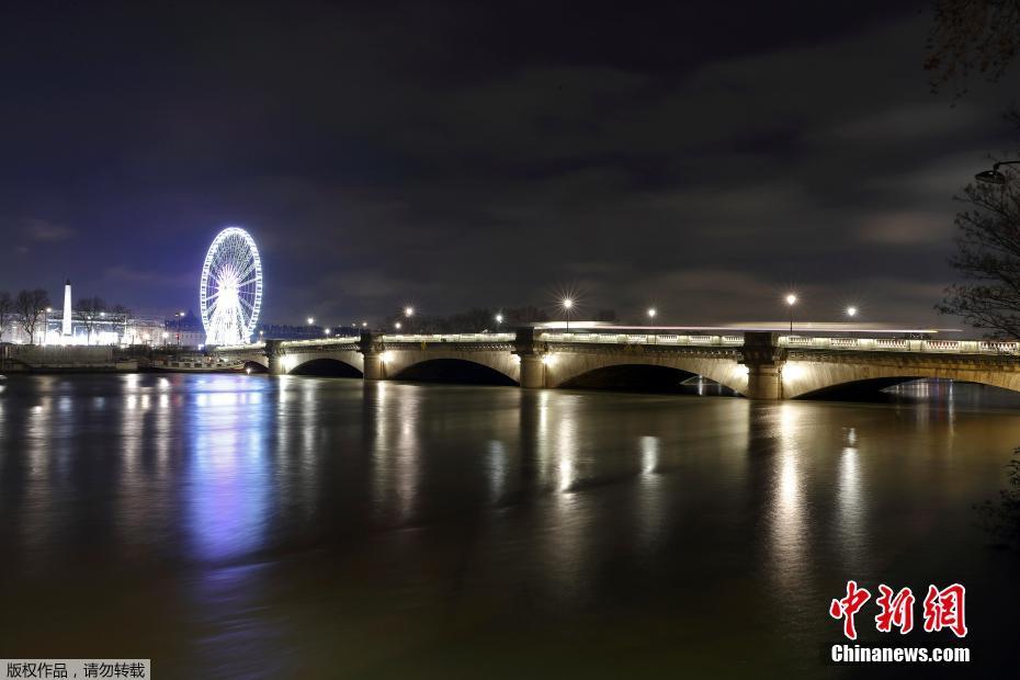 ​高涨的塞纳河水与巴黎协和大桥,以及协和广场的摩天轮。