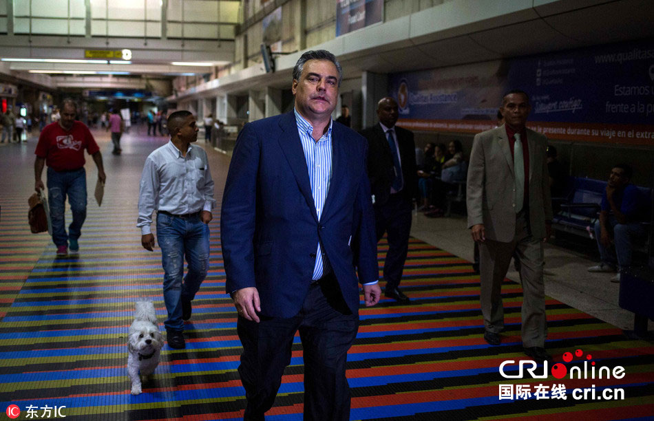 当地时间2018年1月29日,委内瑞拉加拉加斯,西班牙驻委内瑞拉大使费尔南德斯(Jesus Silva Fernandez)从机场离境。图片来源:东方IC
