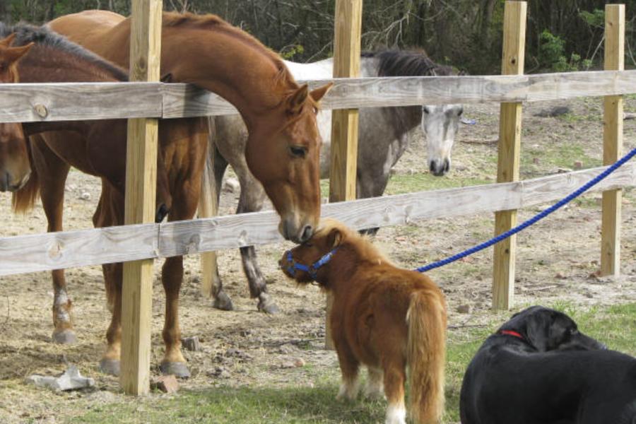 其他马儿“”好奇地”看着小马。