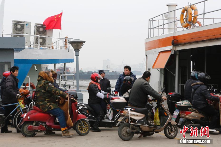 图为民众乘坐最后一条非空调普通轮渡摆渡过江。