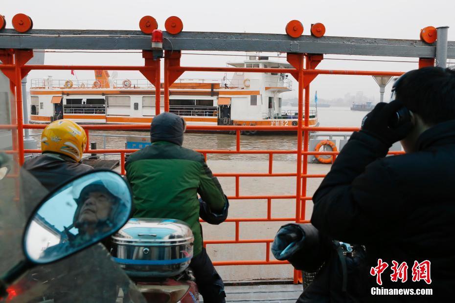 图为民众乘坐最后一条非空调普通轮渡摆渡过江。