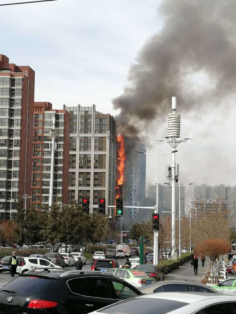 郑州一高层建筑着火 黑烟飘起十几层楼高