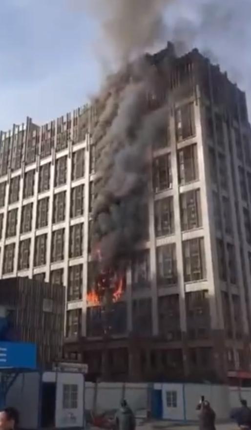 郑州一高层建筑着火 黑烟飘起十几层楼高