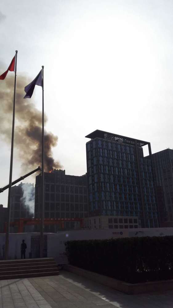 郑州一高层建筑着火 黑烟飘起十几层楼高