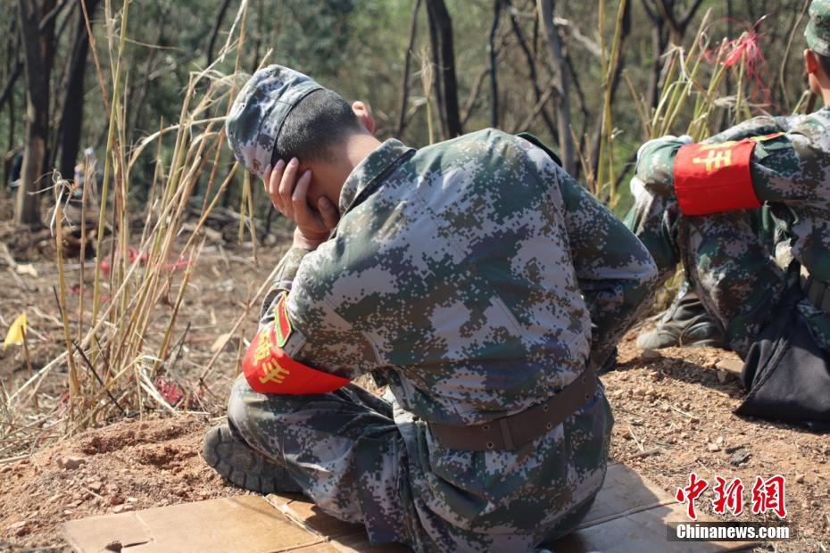 中越边境扫雷 官兵冬日席地午休