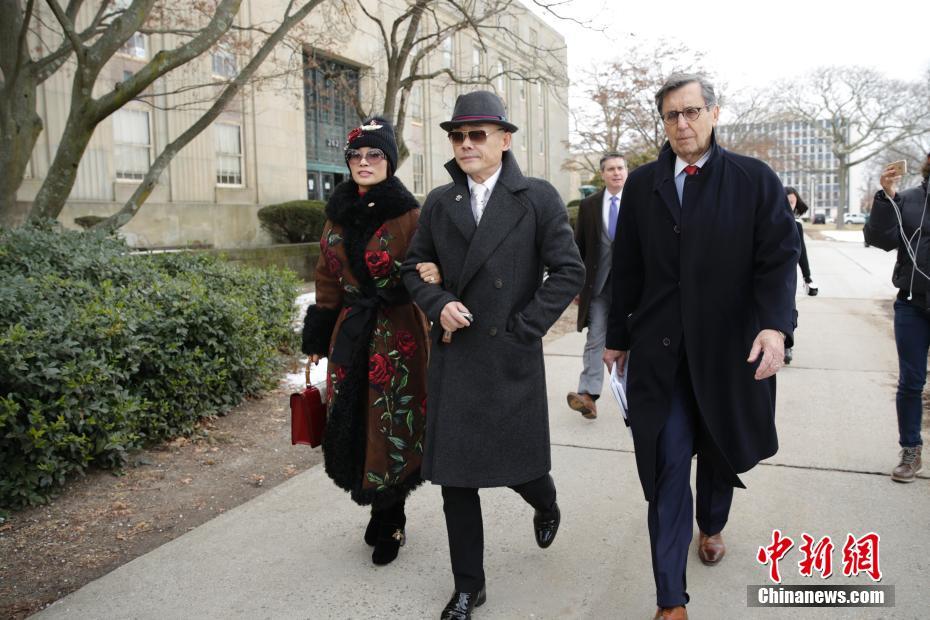 2017年1月19日凌晨,周立波在长岛莱亭顿因驾车蛇行被警察拦下。警方搜查车辆发现一把装有子弹的手枪和两袋毒品,立即逮捕了周立波和同车的唐爽。但检方去年7月撤销了对唐爽的所有指控。图为周立波走出法院。 中新社记者 廖攀 摄