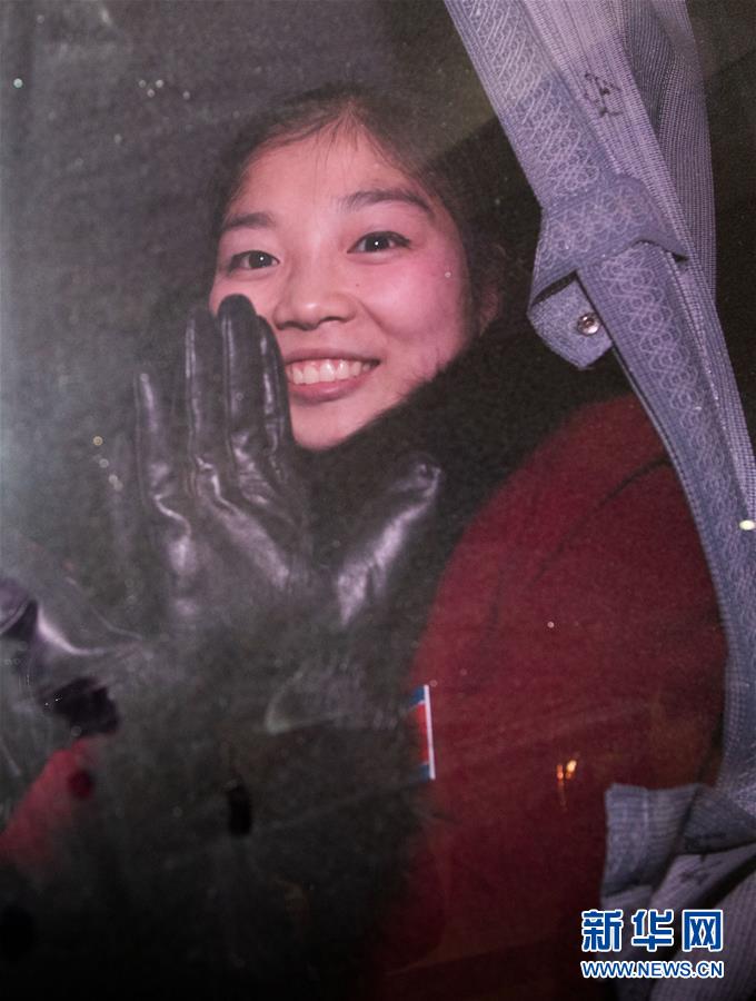 2月1日,朝鲜平昌冬奥体育代表团花样滑冰运动员廉大玉抵达后乘坐大巴前往运动员村。 当日,朝鲜平昌冬奥体育代表团抵达韩国。新华社发(李相浩摄)