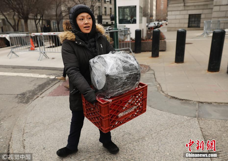 ​当地时间2018年2月1日,美国纽约,一女子把遗落在路边的高压锅拿走,这口被遗忘的高压锅让纽约警方虚惊一场。图片来源:视觉中国