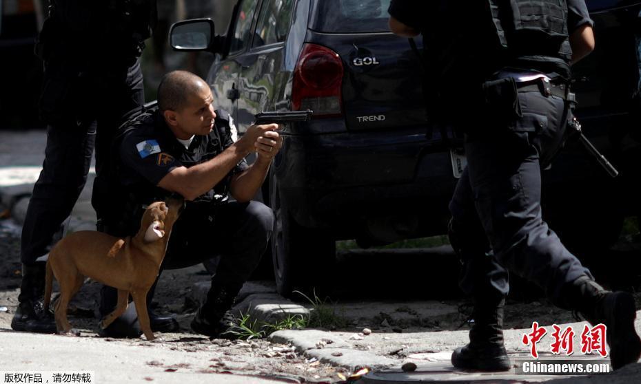 巴西警方贫民区打击毒贩 小狗乱入撒娇求摸摸