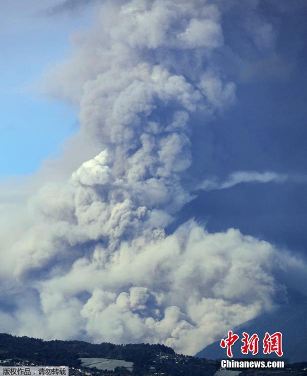 当地时间2月1日,危地马拉火山“火峰”在2018年首次喷发,火山灰直冲云霄。