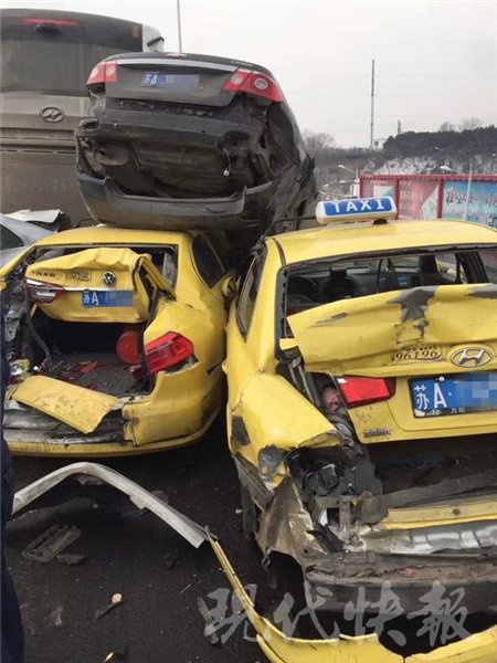 南京高架路多车追尾“叠罗汉”