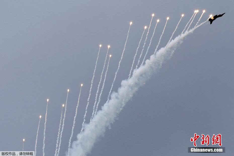 两年一度的新加坡航空展将于2018年2月6日至11日举行,来自约50个国家的超过1000家公司,已确定会参加这个亚洲最大规模的航空展览。图为当地时间2月1日,新加坡空军战斗机在空中进行飞行表演彩排。​