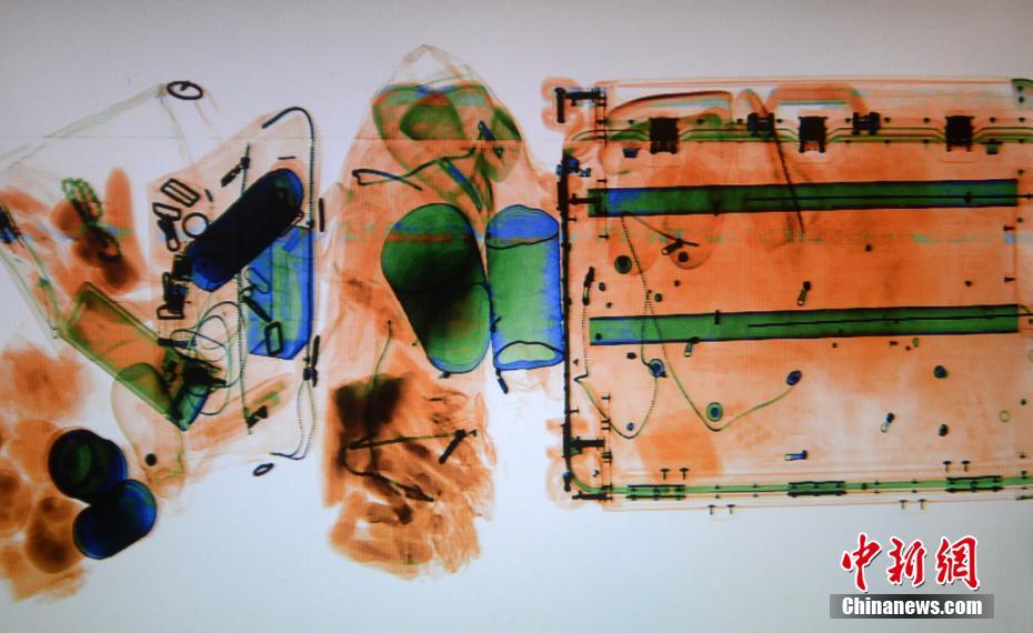 2月2日是2018年春运第二天,返乡潮已经到来,许多旅客大包小包又拉又拎,在扬州市汽车客运站安检处,旅客人人受检、行李件件过机,安检X光下的春运行囊犹如水彩画。孟德龙 摄