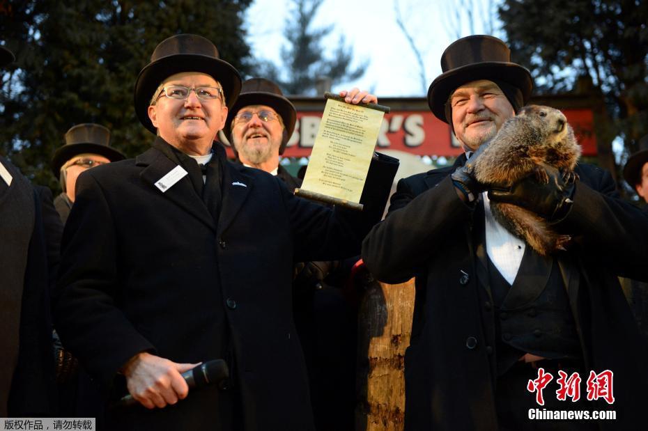 当地时间2月2日,美国宾州旁苏托尼迎来一年一度的土拨鼠日。该节日用土拨鼠来预测春天的到来。土拔鼠如果看到自己的影子,就表明春天即将来到。今年土拨鼠“菲尔”预测寒冷的冬季还要持续六周。