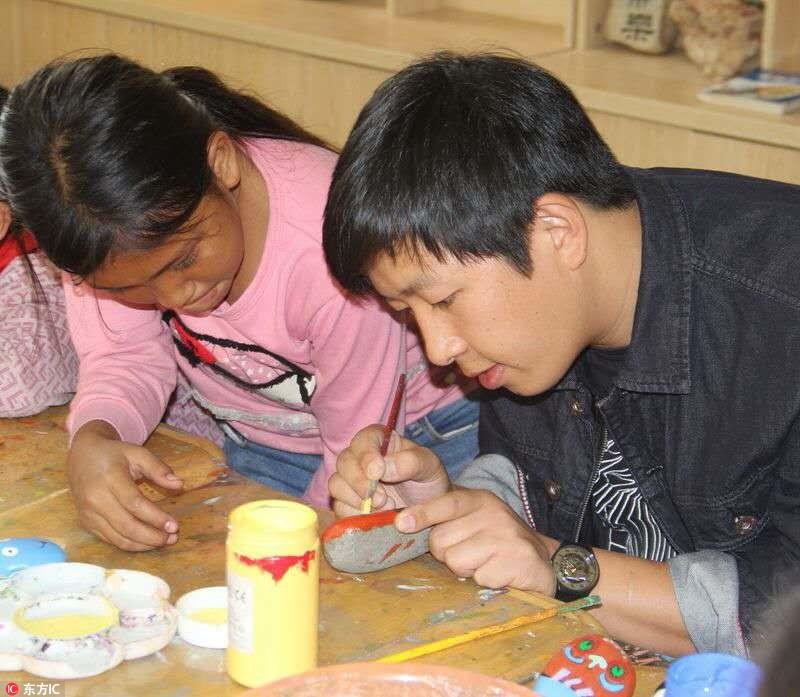 乡村教师带学生以石作画 换取过冬羽绒服
