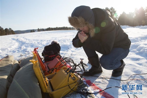 2月1日,在漠河县北极镇雪地上,科研人员使用自主研发的地面电磁探测系统探测地下结构,在寒冬中调试设备,呵气温暖双手。时下正值隆冬,中国科学院地质与地球物理研究所漠河空间环境野外观测站的科研人员在零下数十摄氏度的严寒环境中开展科研工作。据了解,中国科学院地质与地球物理研究所漠河空间环境野外观测站位于黑龙江省漠河县北极镇北约1公里处,是我国最北端开展空间环境观测的地球物理野外台站,对于观测研究我国空间环境扰动及传播具有重要作用。新华社记者 金立旺 摄