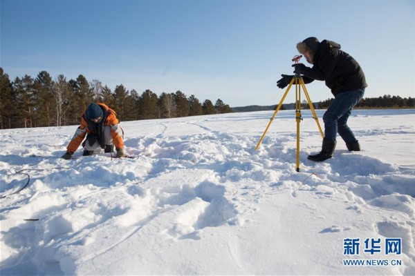 2月1日,在漠河县北极镇,科研人员在雪地中调试安装设备自主研发的地面电磁探测系统。时下正值隆冬,中国科学院地质与地球物理研究所漠河空间环境野外观测站的科研人员在零下数十摄氏度的严寒环境中开展科研工作。据了解,中国科学院地质与地球物理研究所漠河空间环境野外观测站位于黑龙江省漠河县北极镇北约1公里处,是我国最北端开展空间环境观测的地球物理野外台站,对于观测研究我国空间环境扰动及传播具有重要作用。新华社记者 金立旺 摄