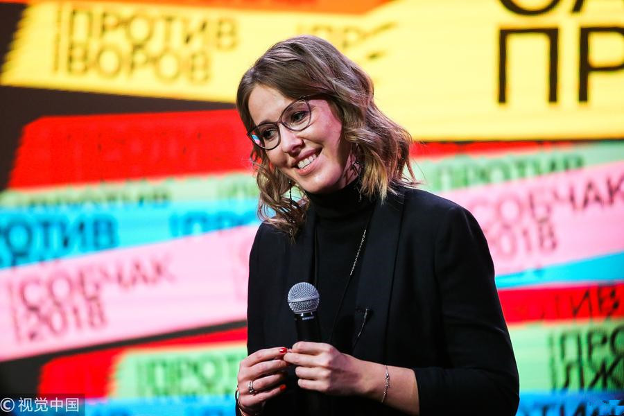 当地时间2018年2月3日,俄罗斯圣彼得堡,俄罗斯电视节目主持人、总统候选人克谢尼娅·索布恰克(Ksenia Sobchak)在餐厅会见支持者。
