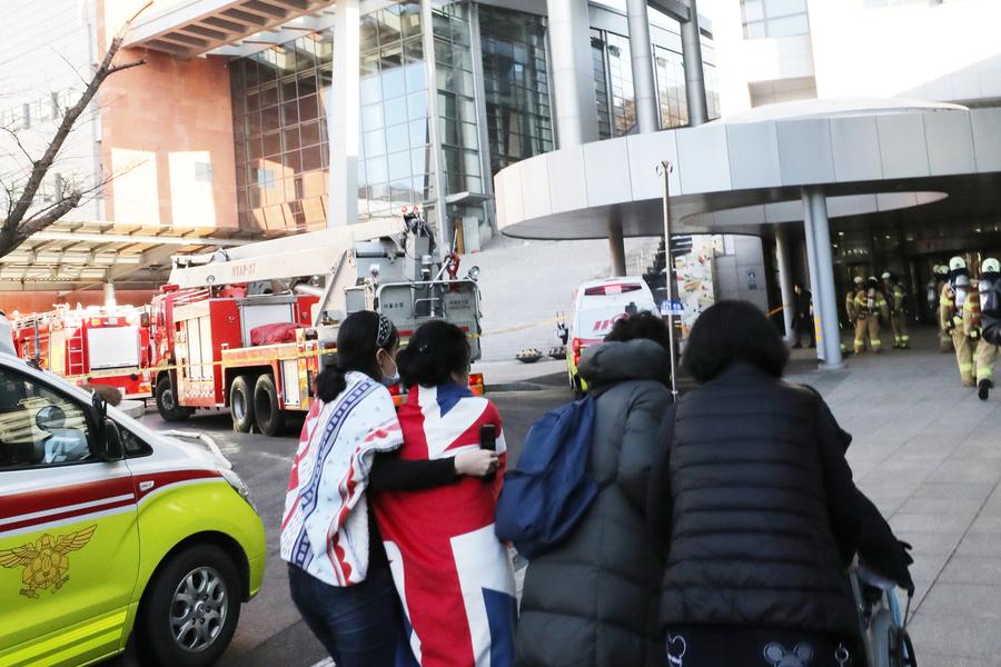 韩国一医院发生火灾 百名病人仓皇逃往屋顶
