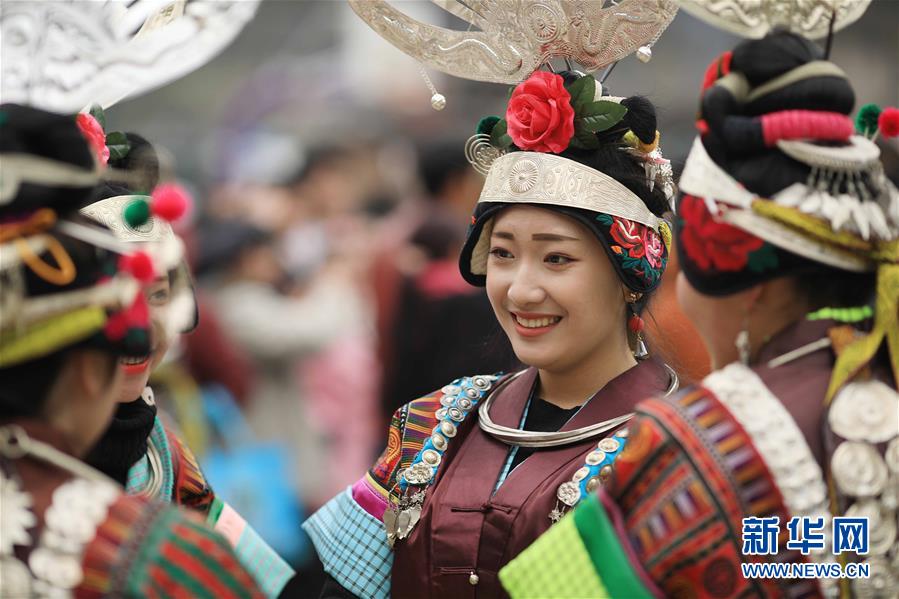 2月3日,在贵州省黔东南苗族侗族自治州丹寨县兴仁镇岩英村,盛装打扮的苗族女孩在跳芦笙舞。当日,贵州省黔东南苗族侗族自治州丹寨县兴仁镇岩英苗寨举行芦笙会,喜迎春天的到来。 新华社发(黄晓海 摄)