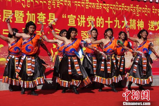 卓舞在藏语中被称为“腰鼓舞”,具有千余年历史,被列入中国国家级非物质文化遗产。图为卓舞。 孙翔 摄