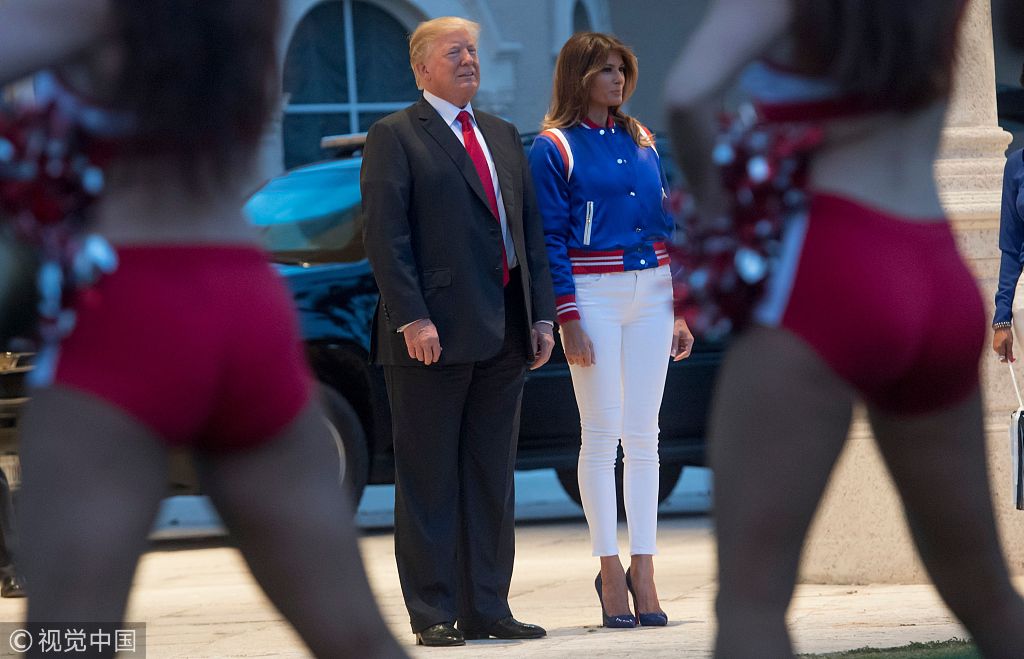 特朗普出席“超级碗”派对 与啦啦队员挨个握手