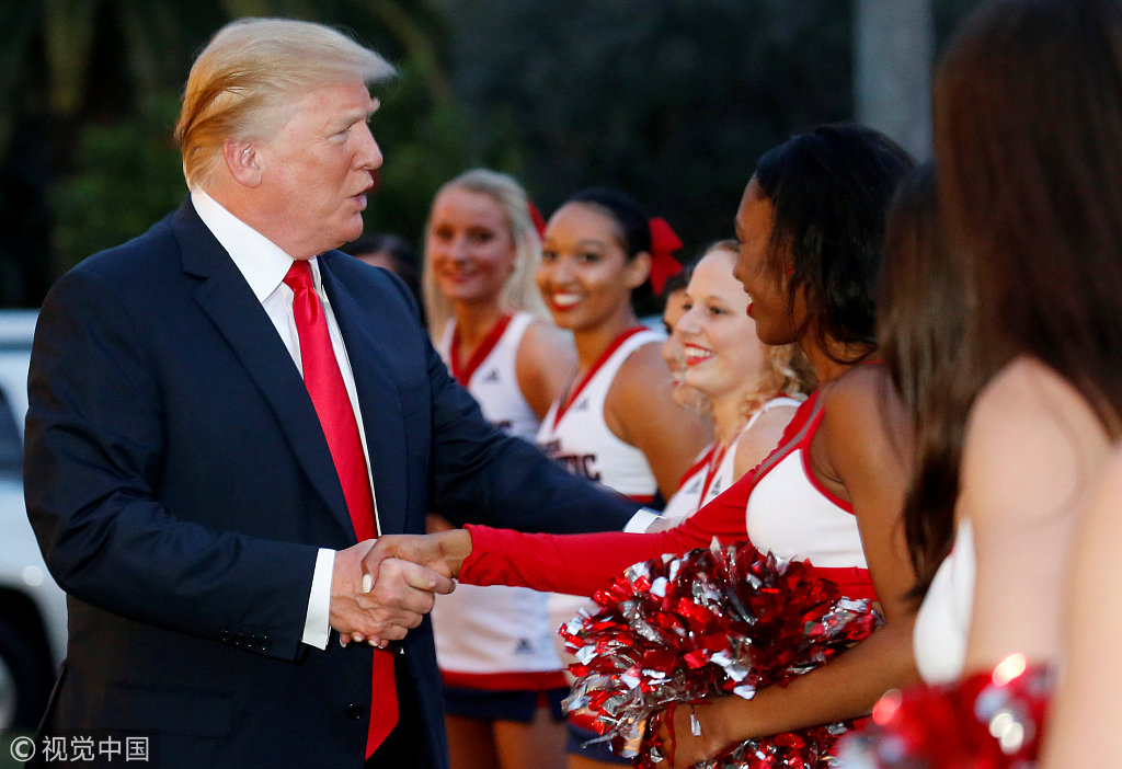 特朗普出席“超级碗”派对 与啦啦队员挨个握手