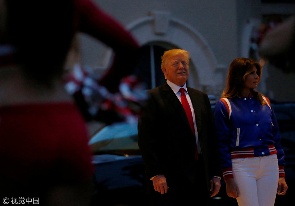 特朗普出席“超级碗”派对 与啦啦队员挨个握手