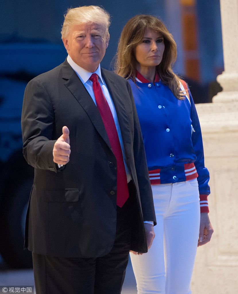 特朗普出席“超级碗”派对 与啦啦队员挨个握手