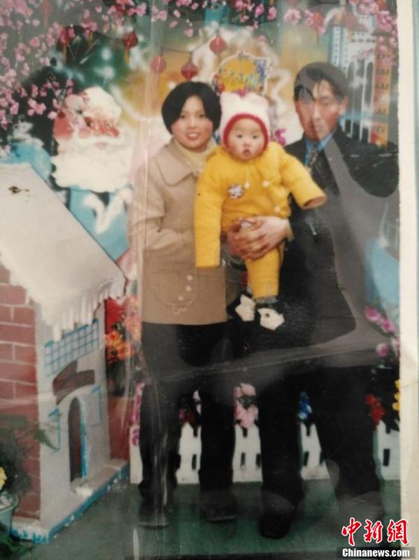 曾邱兵小时候与父母的合影照片。 王海波 摄