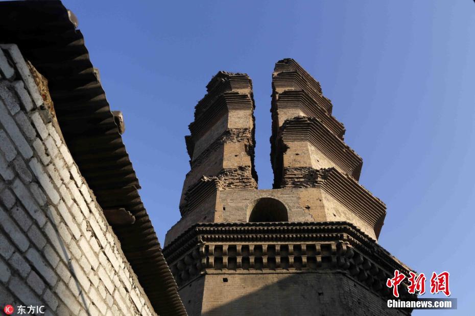 2月6日消息,位于山西曲沃县的感应寺塔从侧面看去,塔身中央裂开一道缝。 图片来源:东方IC