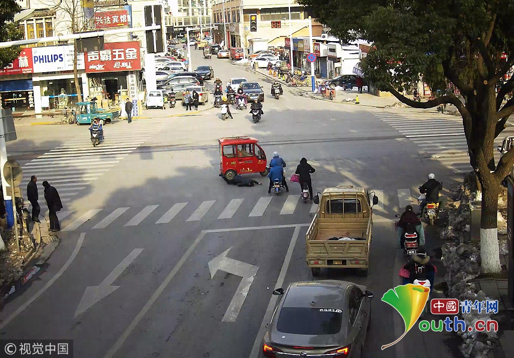 2018年2月4日下午3时50分许,江苏镇江句容市区的宁杭路与人民路路口,发生一起电三轮撞伤行人的交通事故。一名77岁老汉酒后驾驶一辆封闭式电动三轮车,在路口抢黄灯抢行时,将正在过路口的一名中年妇女撞倒受伤。目前,伤者因颅内受伤正在医院治疗,事故还在进一步调查处理中。 来源:视觉中国/荔枝网