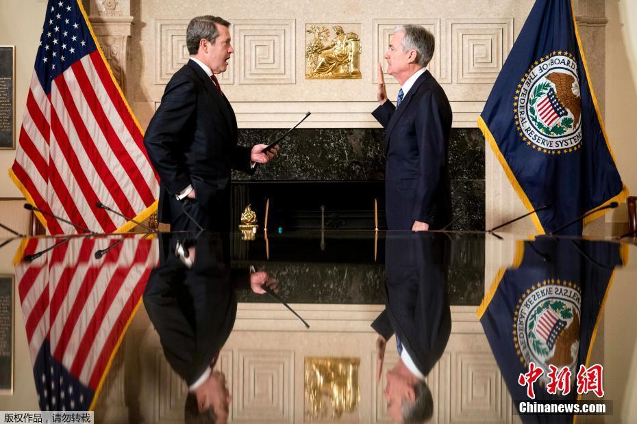 新美联储主席杰罗姆·鲍威尔(Jerome Powell)宣誓就职现场。