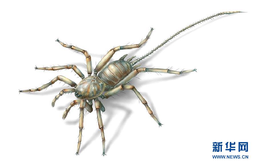 这是中国科学院南京地质古生物研究所提供的黄迪颖领衔的科研团队研究的应氏奇美拉蛛形态构造。  新华社发