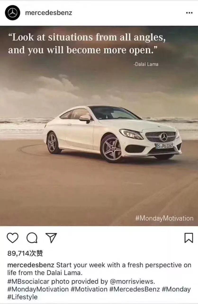【环球网综合报道】梅赛德斯-奔驰公司日前在社交媒体instagram官方账号上援引达赖喇嘛的言论做广告。在被“眼尖”的中国网民发现后,奔驰6日致歉。